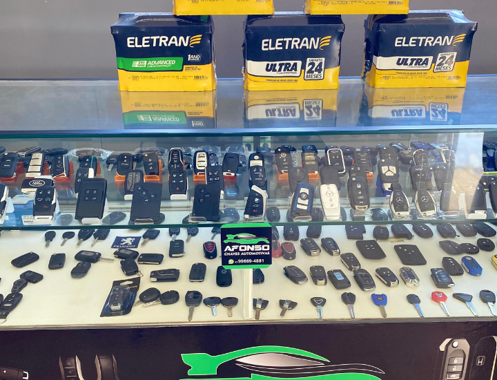 Somos especialistas em chaves automotivas, oferecendo desde modelos tradicionais até chaves canivete e presenciais. Contamos com as mais modernas máquinas de corte e programação, garantindo precisão, rapidez e total compatibilidade com o seu veículo.